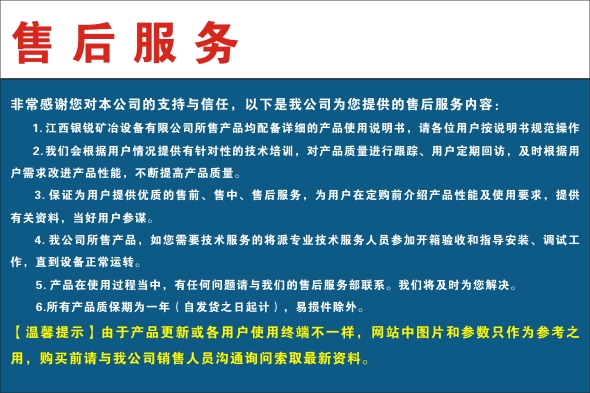 5. 产品在使用过程当中,有任何问题请与我们的售后服务部联系。我们将及时为您解决。6.所有产品质保期为一年(自发货之日起计),易损件除外。