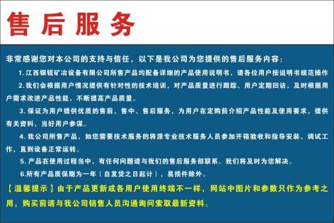 为适应多种接矿容器的使用,折叠式接矿滑架,可以上下升降使用。机器的电器均已安装好,接上电源和地线,即可按使用要点开车运转。