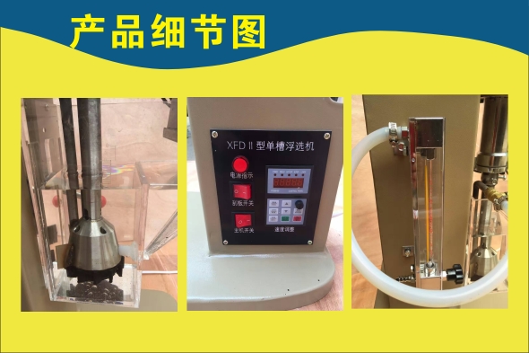 XFDⅡ型为充气式单槽浮选机,具有液位调节、充气量调节、转速数字显示装置和补加水装置;叶轮采用变频无级调速,液晶数字显示,可配装温度控制器,浮选槽内矿浆温度适时显示。是各地质、冶金、建材、化学工业实验室浮选少量矿样的理想设备。